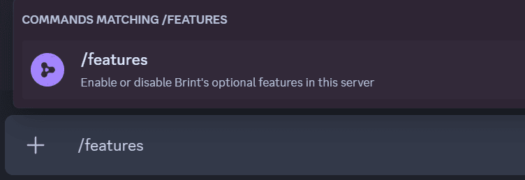 As a server admin, you have access to the /features command after inviting Brint to your own server: